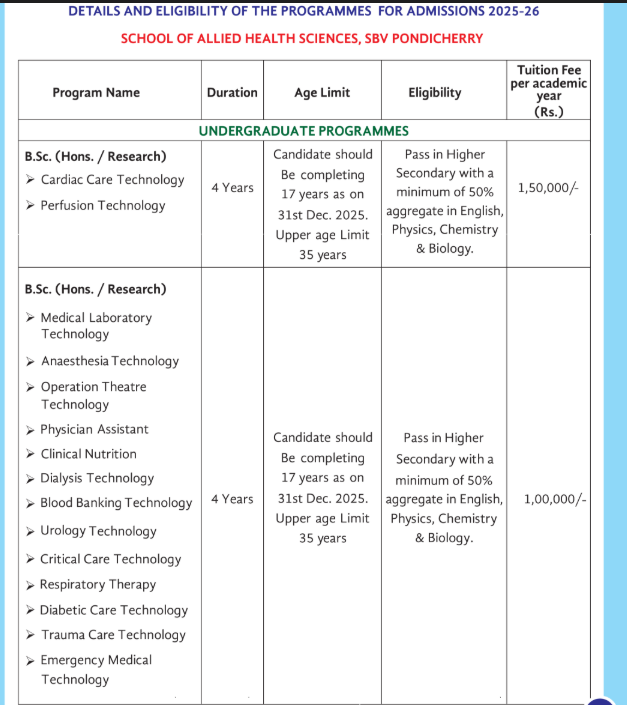 | Admission Timeline [B.Sc] | Jul 20, 2025 - Sep 30, 2025 |