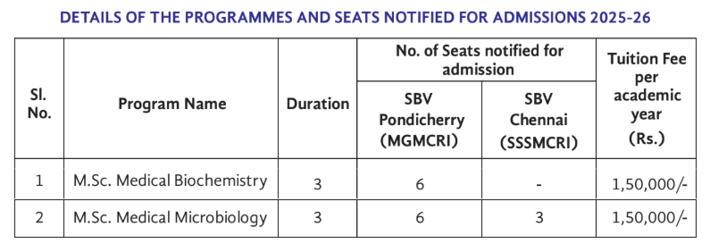 MGMCRI offers a total of 6 seats for M.Sc Medical Microbiology.