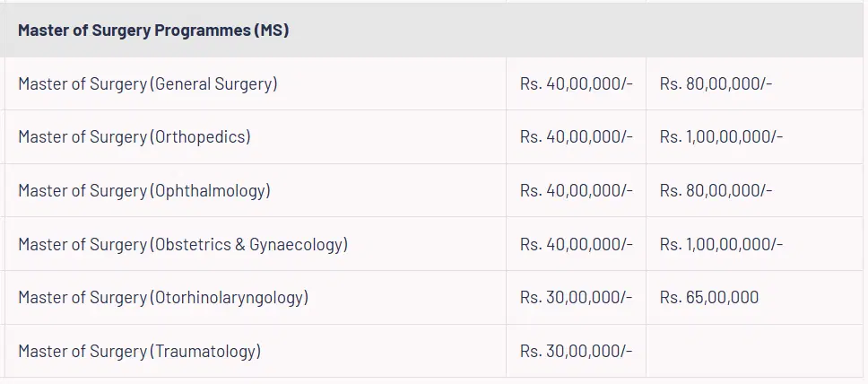 MGM Medical College Navi Mumbai M.S Orthopaedics fees in first year is ₹ 42 Lakhs. The detailed fees is mentioned below.MGM Medical College Navi Mumbai Hostel Fee is ₹ 90,000.