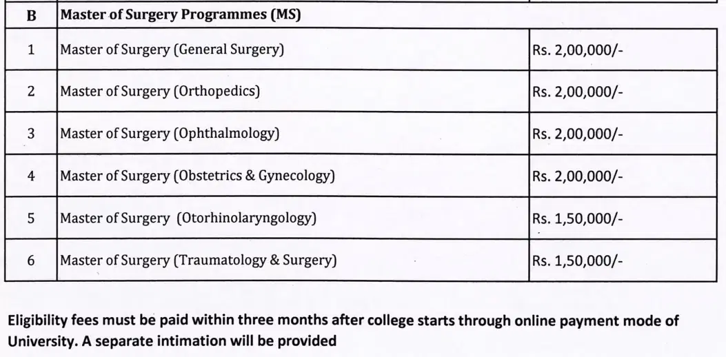 | Fees (2025 - 2026) | Year 1 (in INR) | Year 2 (in INR) | Year 3 (in INR) |