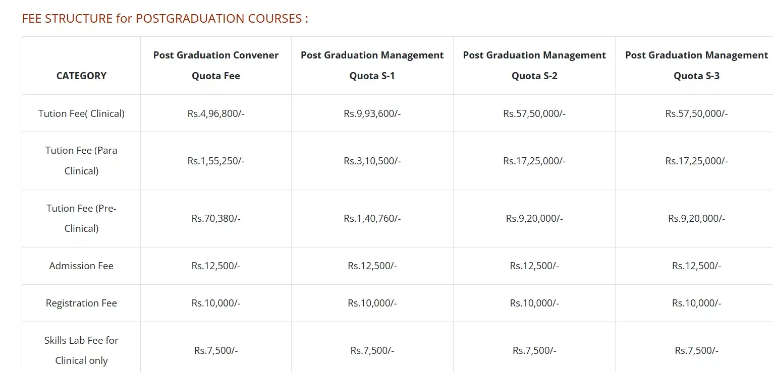 - For Management category students, the total fees is ₹ 30.26 Lakhs.