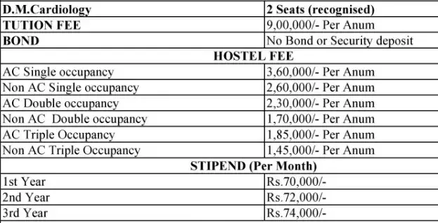 Earlier, DM Cardiology fees at Dr. Pinnamaneni Siddhartha Institute of Medical Sciences & Research Foundation Vijayawada was ₹ 34.5 Lakhs (in 2024) for the entire course duration. This shows a fee decrease of ₹ 7.5 Lakhs over the year.