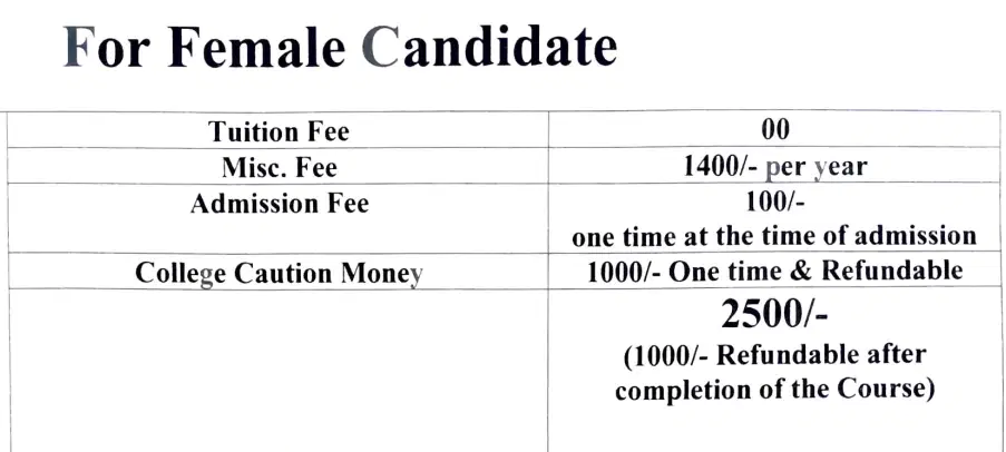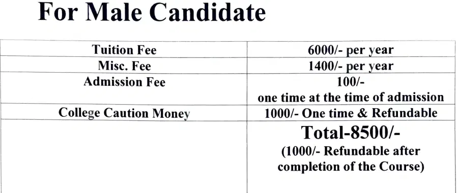 The faculty-to-student ratio ranges from 1:10 to 1:15, and attendance of 75% is required, demanding 250 lectures annually. The college's fee structure is affordable, with annual tuition of Rs. 7,500 to Rs. 8,500 for general candidates, lower for girls and reserved categories. Hostel fees are Rs. 400 per month, mess charges Rs. 3,000 per month, and exam charges about Rs. 3,000. Admission fees are Rs. 8,500. The college does not offer scholarships but reserved category students can benefit from state-funded programs like e-Kalyan, offering approximately Rs 24,000 per session.