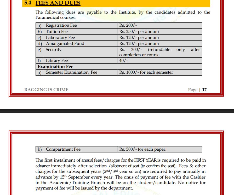 - PGIMER Chandigarh Hostel Fee is ₹ 1,200.