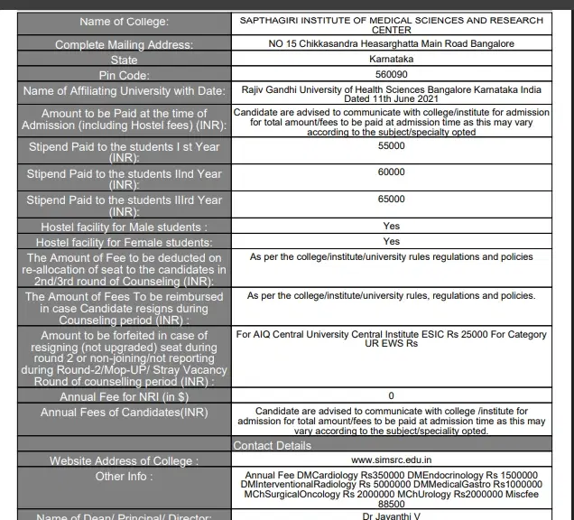 SIMSRC M.Ch Urology fees in first year is ₹ 20.89 Lakhs. The detailed fees is mentioned below.SIMSRC offers a total of 4 seats for M.Ch Urology. Admissions are offered based on NEET-SS. Check SIMSRC Admission 2025