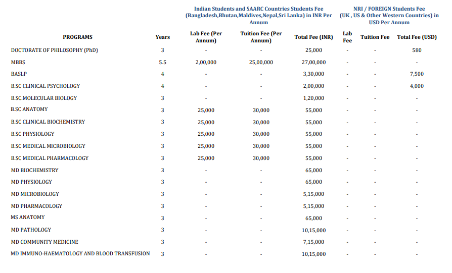 | Fees (2025 - 2026) | Year 1 (in INR) | Year 2 (in INR) | Year 3 (in INR) | Year 4 (in INR) |