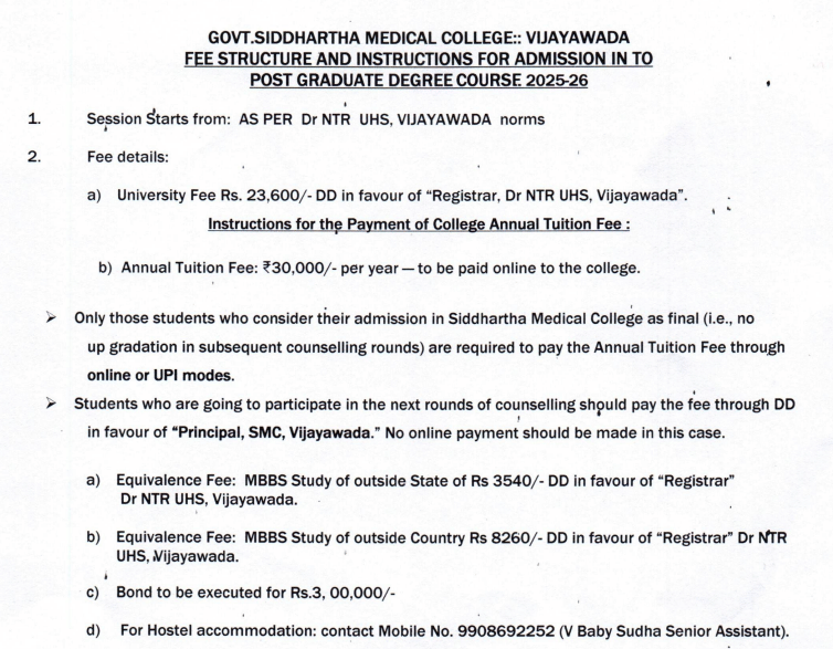 SMC Vijayawada M.D Radiodiagnosis fees in first year is ₹ 53,600. The detailed fees is mentioned below.Check SMC Vijayawada Admission 2025
