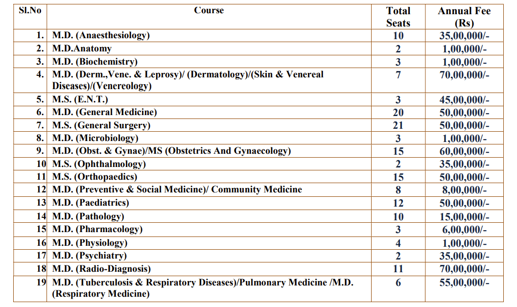 - Candidates need to pay ₹ 70.85 Lakhs in the first year.