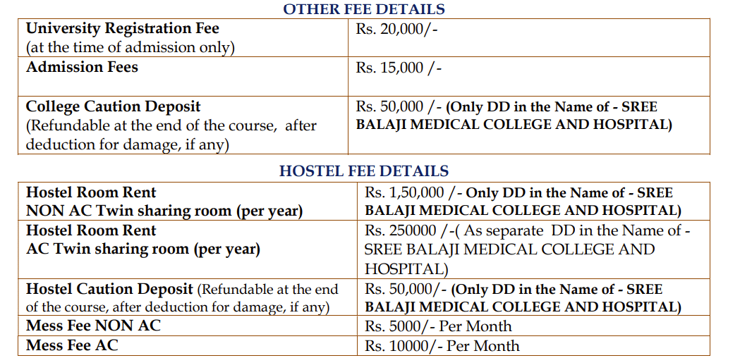 Earlier, M.D Dermatology, Venereology & Leprology fees at Sree Balaji Medical College and Hospital Chennai was ₹ 1.96 Crore (in 2023) for the entire course duration. This shows a fee increase of ₹ 15 Lakhs over the year.