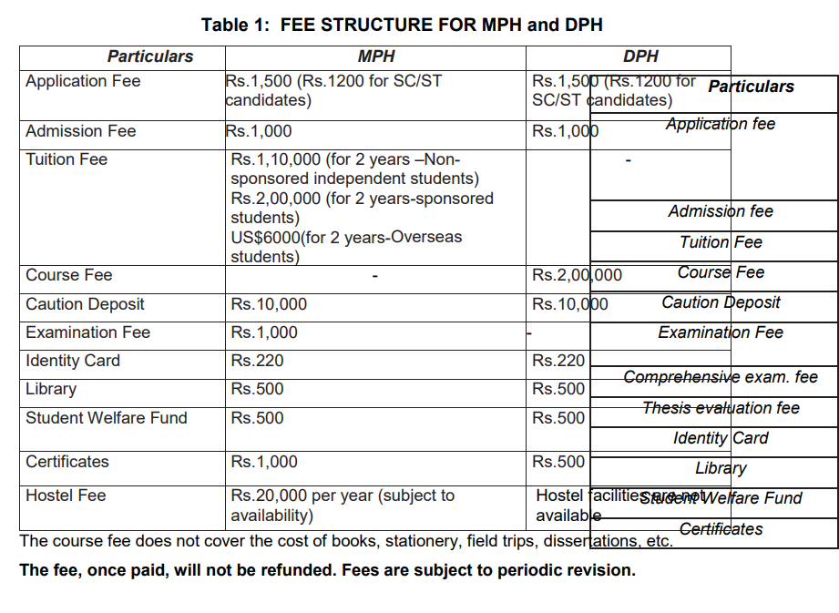 Additional costs include an admission fee of 1,000 rupees, an application fee of 1,000 rupees (800 rupees for SC/ST candidates), a caution deposit of 10,000 rupees, and an examination fee of 1,000 rupees. Other charges include an identity card fee of 220 rupees, library charges of 500 rupees, a student welfare fund of 500 rupees, certificate fees of 1,000 rupees, and a hostel fee of approximately 20,000 rupees per year.