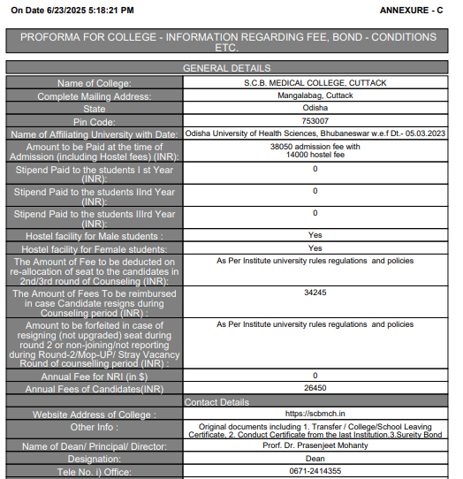 Despite their high qualifications, there is a need for more professors and clinical guides as some faculty members focus on private practice. The college covers 19 subjects with rigorous exams, requiring a 50% pass mark. SCB Medical College offers an affordable fee structure compared to private institutions. Annual tuition fees range from Rs. 18,000 to Rs. 30,000, with hostel fees approximately Rs. 10,000 per year. Including other costs, the total expense for an MBBS degree is under Rs. 1.5 lakhs for 4.5 years, and the entire course, including accommodation, ranges from Rs. 2 to Rs. 3.5 lakhs.
