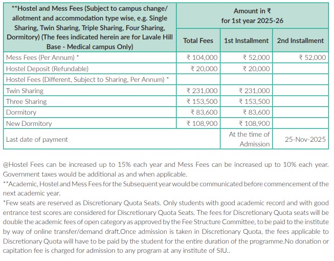 Hostel facilities were pretty good the hostels were 2/3 sharing. You need to apply well in advance or rather as soon as your admission is confirmed you should reserve a seat in the hostel. the hostels provide good food (Breakfast/Lunch/Dinner), all 7 days a week (Except Sunday Dinner) Cause you definitely need a break once in a while, plus the food gets a little monotonous after 1 point. In case you plan to stay outside hostel, the average rent for a good/decent place nearby is approximately 6-10 k/ month.