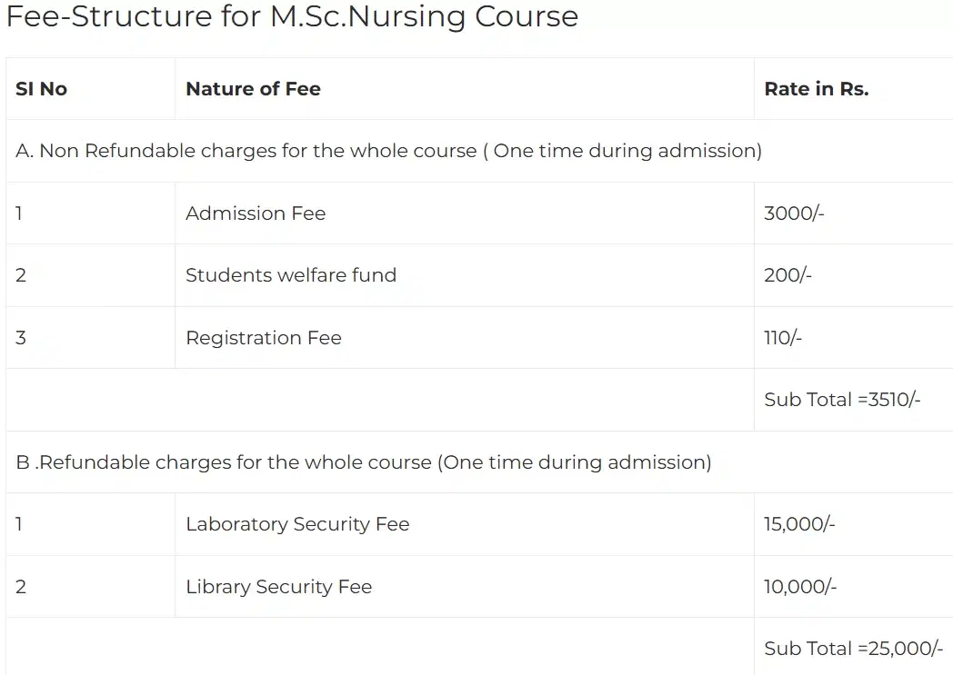 Earlier, M.Sc Nursing fees at Tripura Medical College West Tripura was ₹ 3.48 Lakhs (in 2024) for the entire course duration. This shows a fee decrease of ₹ 800 over the year.