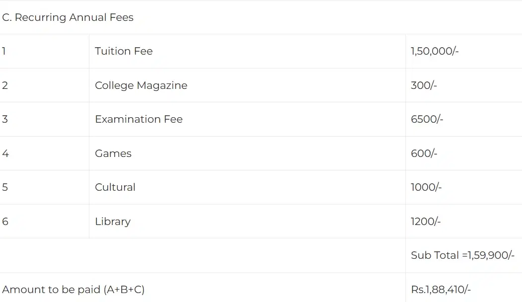 - Candidates need to pay ₹ 1.88 Lakhs in the first year.