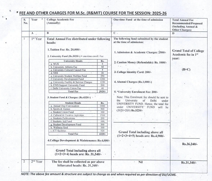 | Fees (2025 - 2026) | Year 1 (in INR) | Year 2 (in INR) |