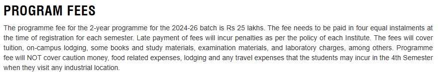 Earlier, PGDM Business Analytics fees at VGSOM was ₹ 25 Lakhs (in 2024) for the entire course duration. This shows that the fee has remained unchanged since 2024.