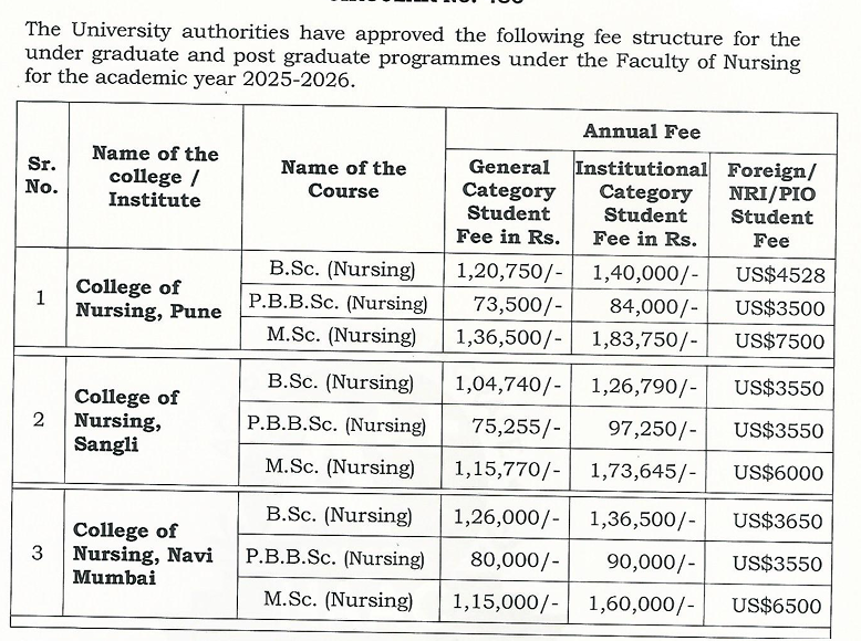 30 Aug, 2025 Bharati Vidyapeeth College of Nursing Pune P.B.B.Sc Nursing Fee structure 2025-26 has been released. The Academic Fee is ₹ 73,500 /Yr.