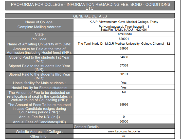KAP Viswanatham Government Medical College Tiruchirappalli Hostel Fee is ₹ 24,000.