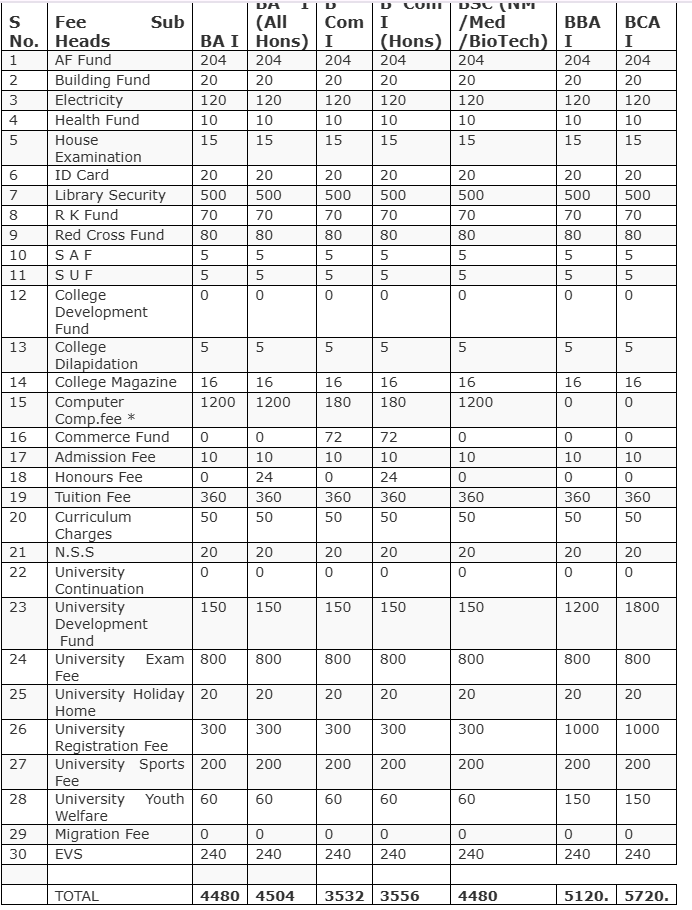 BA and BCom students pay approximately 4,500 and 5,000 INR per year, respectively. Haryana residents may receive additional scholarships. Although the fee structure is favorable, placement opportunities need enhancement, as the college currently lacks comprehensive job fairs and internships.