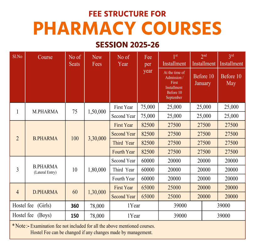 SCPM College of Nursing and Paramedical Science Gonda D.Pharm Pharmacy Fees