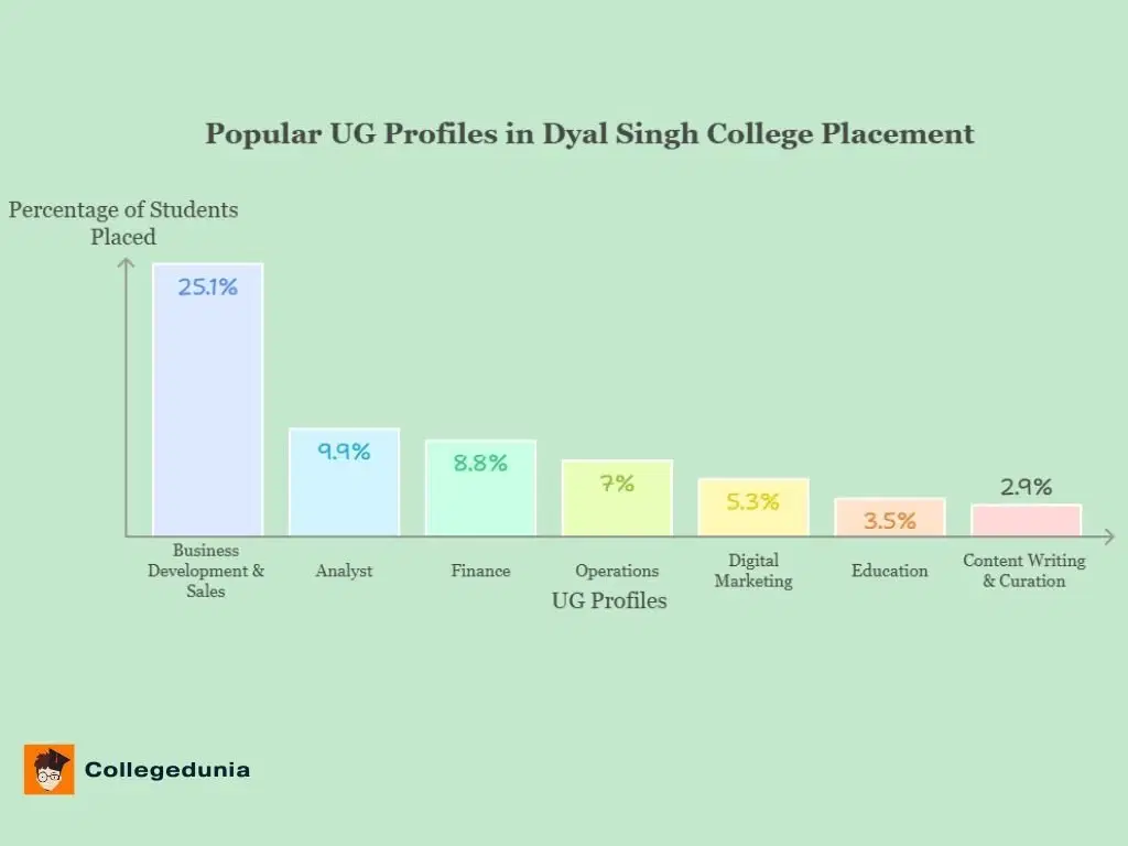 Dyal Singh College offers a robust placement program with a dedicated placement cell that facilitates both placements and internships. Over 130 companies visited the campus in recent years, including major firms like KPMG, EY, Deloitte, and Wipro, providing diverse roles in sectors such as finance, marketing, and IT. The college has seen significant placements, with more than 150 students placed annually.