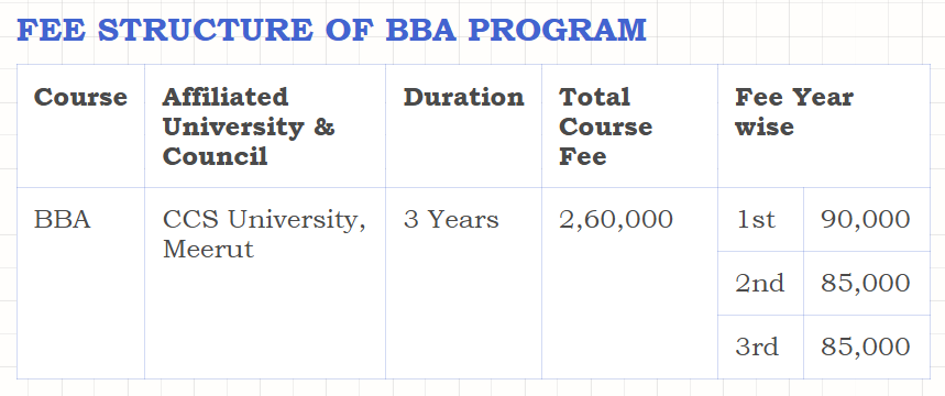 Earlier, BBA fees at Accurate Institute of Management and Technology Greater Noida was ₹ 2.7 Lakhs (in 2024) for the entire course duration. This shows a fee decrease of ₹ 10,000 over the year.