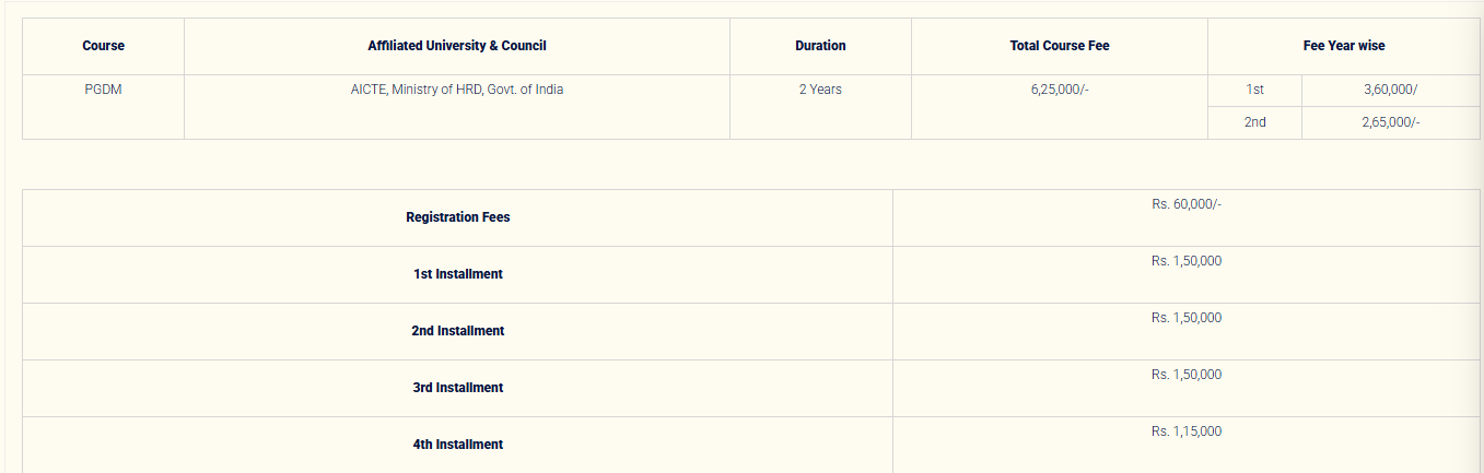 - This includes a total tuition fee of ₹ 6.25 Lakhs.