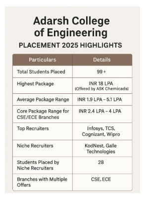 Ques. What is the placement scenario at Adarsh College of Engineering?
