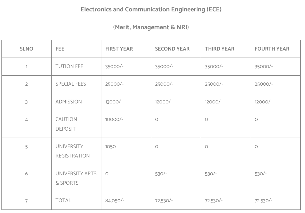 | Fees (2025 - 2026) | Year 1 (in INR) | Year 2 (in INR) | Year 3 (in INR) | Year 4 (in INR) |