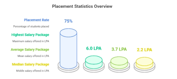 The college offers numerous placement opportunities with companies like Tech Mahindra, Tata, Reliance, and more visiting the campus. Approximately 70-90% of students secure placements, with the highest package reported at 26 LPA and the average package ranging between 2-5 LPA. However, some reviews indicate reliance on off-campus placements and low salary packages from local companies.