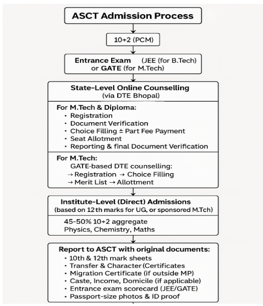 The B.E. program spans four years, while the M.Tech program is of two years’ duration. Admission to the B.Tech programs is based on performance in entrance exams such as JEE Main, MP BE, or MPPET. Candidates must apply online through the official JEE website at www.jeemain.nic.in. Applicants from Madhya Pradesh must have passed their 10+2 examination from the MP Board or any recognized board with Physics and Chemistry as core subjects, along with Mathematics or Information Practices, securing a minimum of 45% marks for general category and 40% for SC/ST candidates. Students from other states must also meet similar criteria, requiring at least 45% marks across all categories.