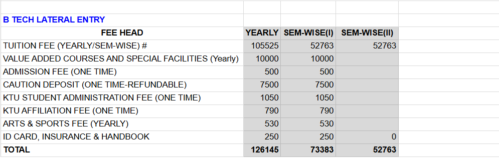 | Ktu Student Administration Fees | ₹1050 | - | - |