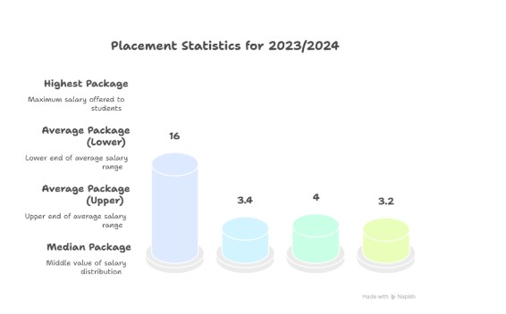 Ans. The research and students review says that the average package for recent years ranges from INR 3.4 to 4 LPA, with the highest package reaching INR 16 LPA in core tech and software roles.