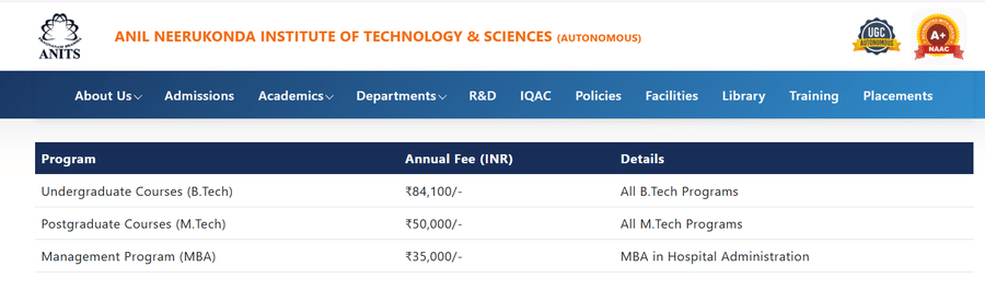 - ANITS Hostel Fee is ₹ 60,000.