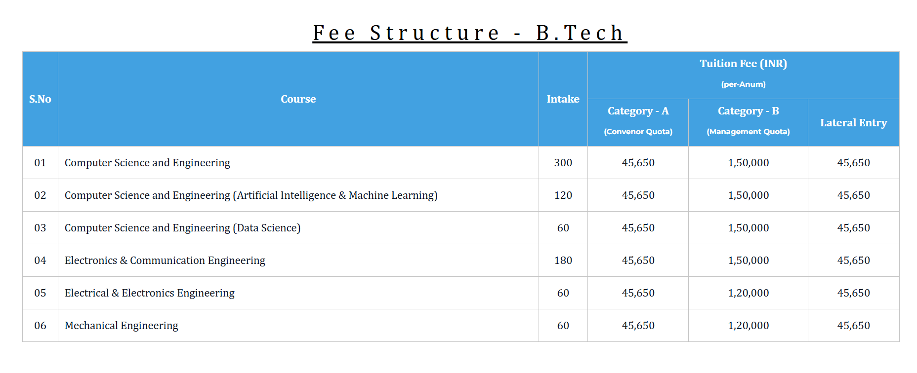 | College | B.Tech Artificial Intelligence & Machine Learning Total Fees |