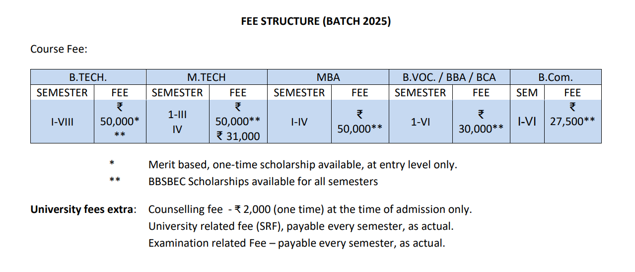 BBA at Baba Banda Singh Bahadur Engineering College Fatehgarh Sahib is a 3 Years Degree. The course is offered On Campus as a Full Time program. Baba Banda Singh Bahadur Engineering College Fatehgarh Sahib BBA First Year Fees is INR 62,000 for 2025.