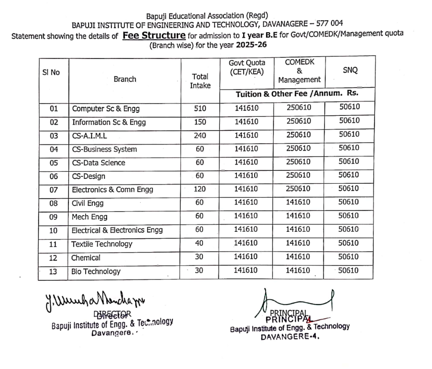 BIET Davangere BE Data Science Fee has not been released yet. For reference you can check the previous year academic fees in the section below.