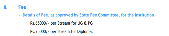 | Fees (2018 - 2019) | Year 1 (in INR) | Year 2 (in INR) | Year 3 (in INR) |