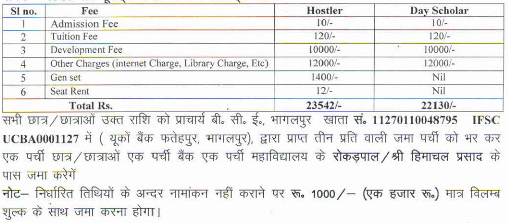 - BCE Bhagalpur Hostel Fee is ₹ 39,400.