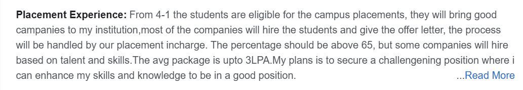 Placement opportunities are particularly favorable for CSE and ECE students, with less availability for mechanical and other core branches. On-campus drives start from the third year, and students are eligible for placements in their final year. The college also offers training and internships, with partnerships for internships through platforms like Internshala.