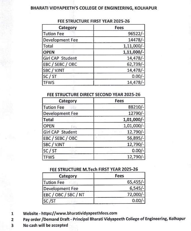 | Bharati Vidyapeeth College of Engineering Kolhapur | ₹ 3.03 Lakhs |