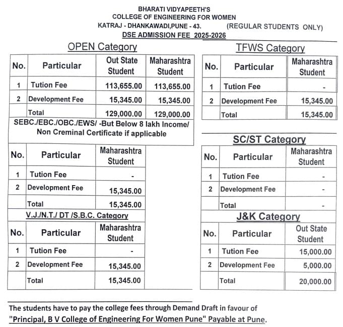 | Bharati Vidyapeeth College of Engineering For Women Pune | ₹ 3.87 Lakhs |