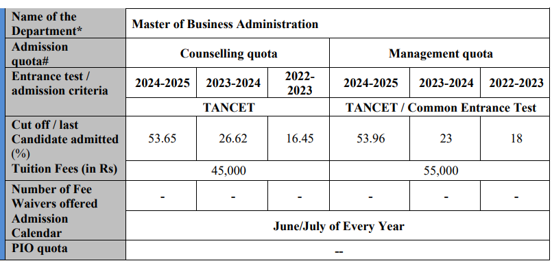 | Confirmation Date of Tentative Allotment of TANCET for Admission 2025 [MBA] | Aug 03, 2025 |