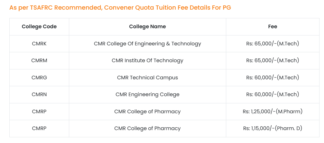 | CMRIT Hyderabad | ₹ 1.2 Lakhs |