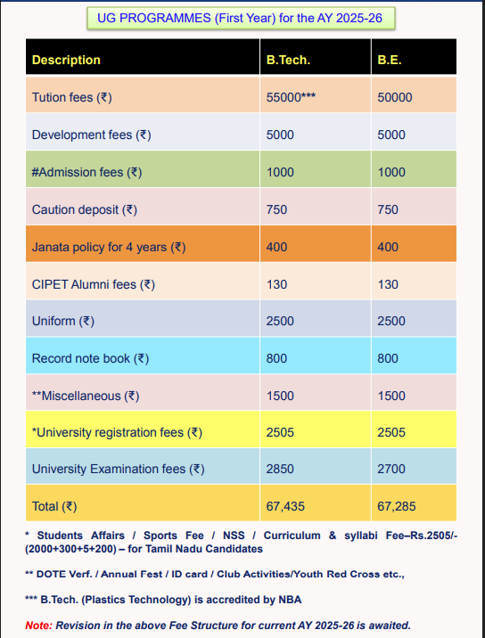 | CIPET Chennai | ₹ 2.62 Lakhs |