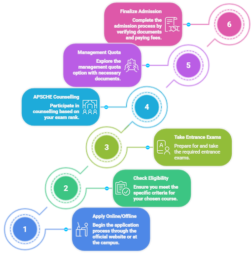 | B.Tech | INR 55,600 | 60-180(Depends on specialization) | 10+2 with 45% | AP EAPCET followed by APSCHE Counselling. |