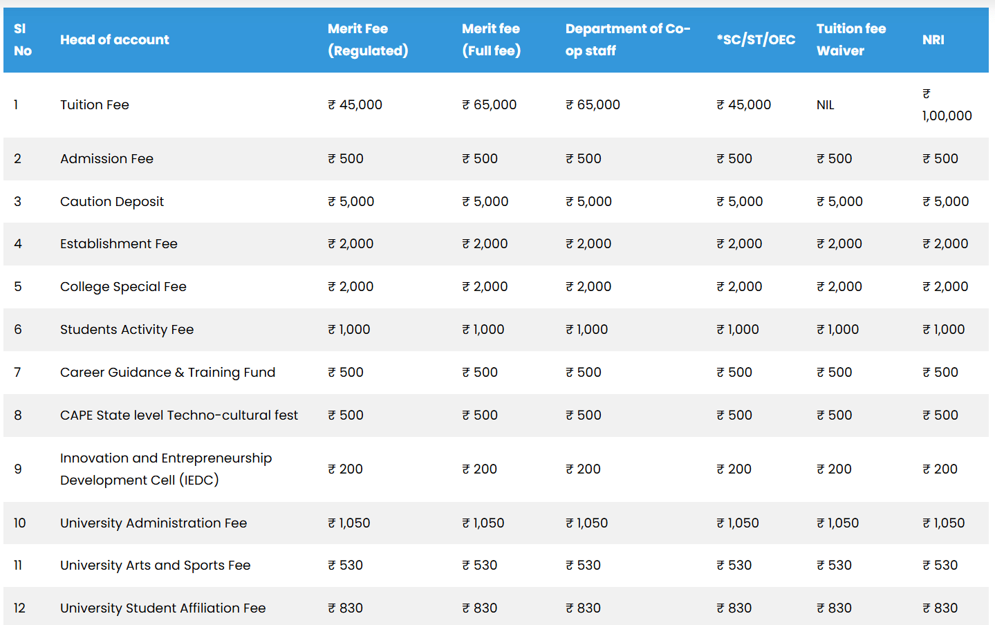 College of Engineering Thalassery Kannur B.Tech {Lateral} Mechanical Engineering Fee has not been released yet. For reference you can check the previous year academic fees in the section below.