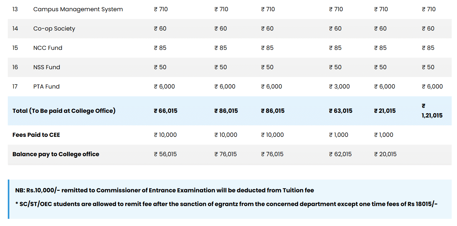 | Fees (2023 - 2024) | Year 1 (in INR) | Year 2 (in INR) | Year 3 (in INR) |