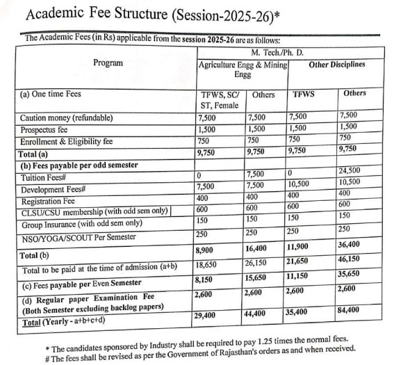 CTAE Udaipur Ph.D Food Process Engineering fees in first year is ₹ 45,000. The detailed fees is mentioned below.CTAE Udaipur Hostel Fee is ₹ 33,850.
