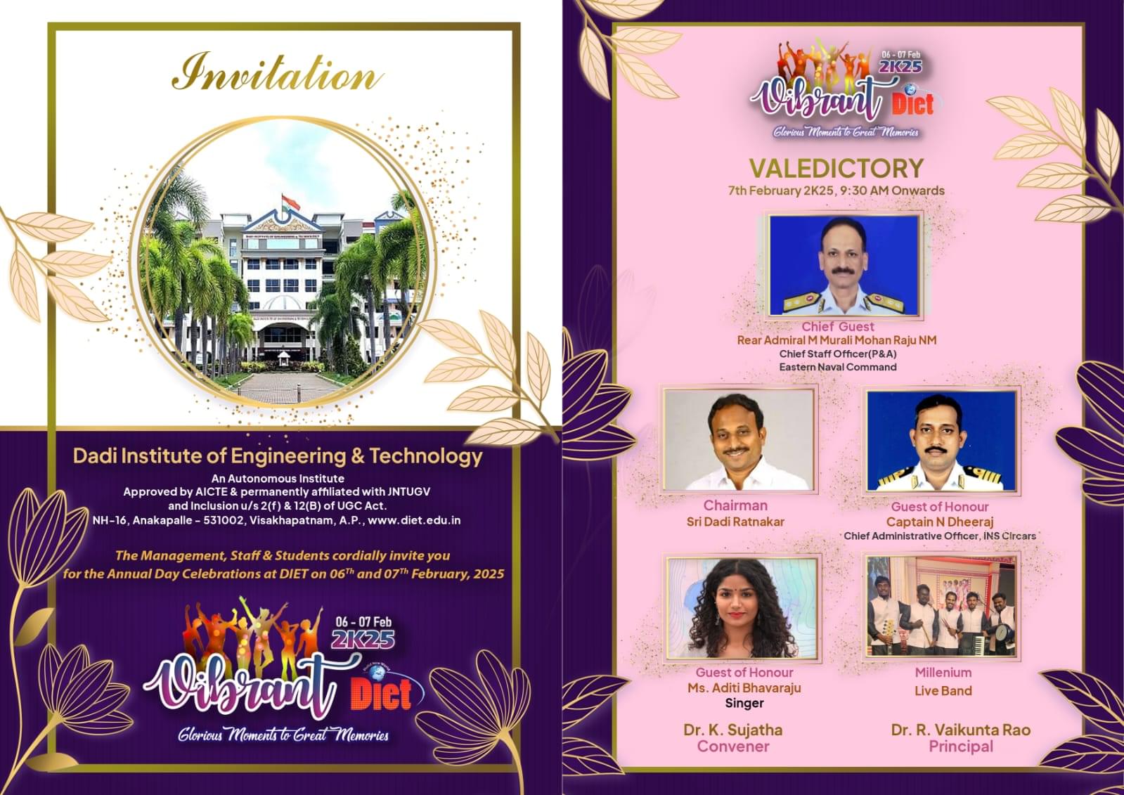 | Location | Dadi Institute of Engineering & Technology (DIET), National Highway 16, Anakapalle, Visakhapatnam - 531 002, A.P |